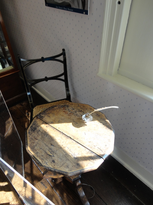 The table at which Jane is believed to have written her last three novels: Emma, Mansfield Park and Persuasion. She is also thought to have revised Sense & Sensibility, Pride & Predjudice and Northanger Abbey here.
